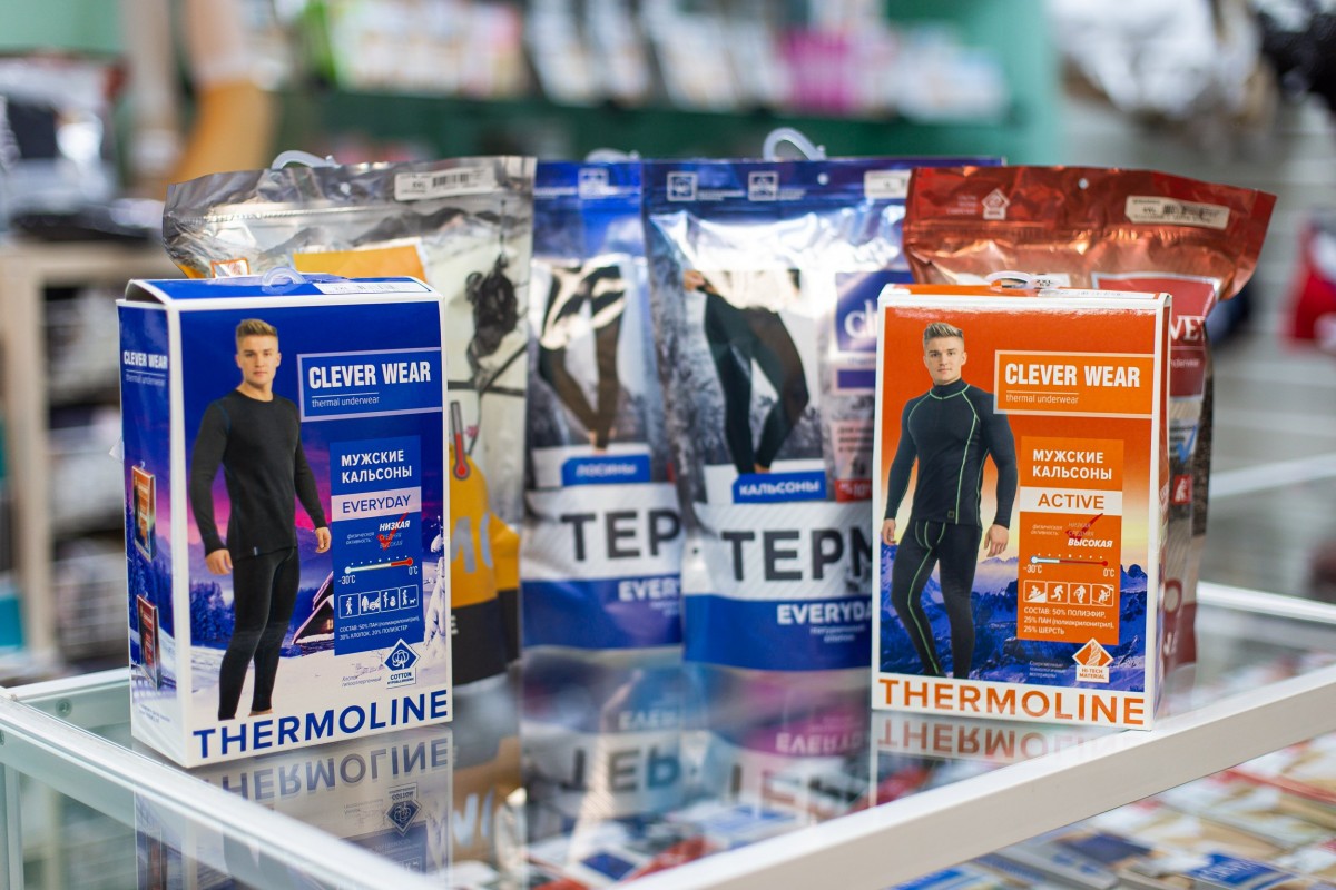 Для мужчин в ассортименте спортивные костюмы, большой выбор нижнего белья, комплекты термобелья для разных погодных условий и видов активности.